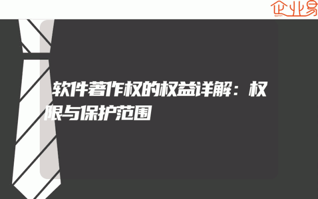 - 软件著作权的权益详解:权限与保护范围一、软件著作权的基本概念软件著作权是指软件的开发者或其他权利人对其所创作的软件作品享有的专有权利。这种权利包括对软件作品的复制权、发行权、租赁权、网络传播权、修改权等各项权益。二、软件著作权的权限范围软件