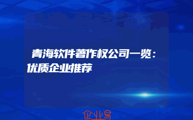 - 青海软件著作权公司一览:优质企业推荐一、青海软件著作权公司概述随着信息技术的快速发展,软件著作权成为了知识产权领域的重要组成部分。在青海,有许多专注于软件著作权保护的公司,它们为企业提供全方位的知识产权服务,帮助企业在知识产权保护方面取得长