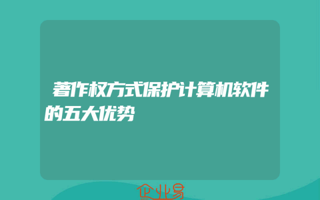 - 著作权方式保护计算机软件的五大优势