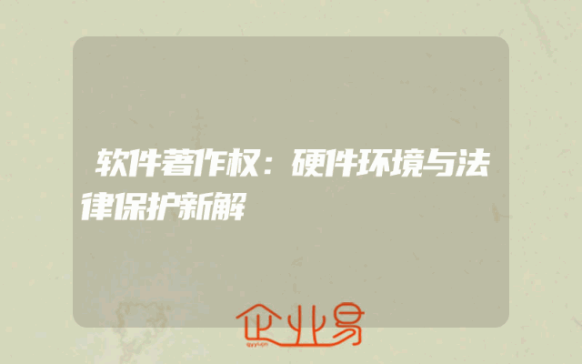 - 软件著作权:硬件环境与法律保护新解一、软件著作权的重要性随着互联网技术的飞速发展,软件著作权保护逐渐成为知识产权保护领域中的重中之重。软件作为现代科技的核心组成部分,其著作权不仅关乎开发者的经济利益,更关乎整个行业的创新与发展。二、硬件环境