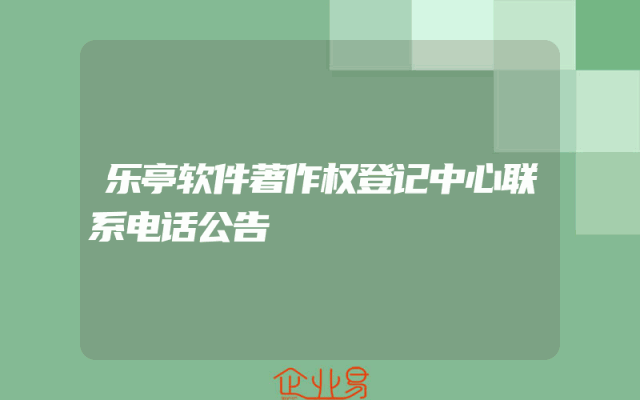 - 乐亭软件著作权登记中心联系电话公告