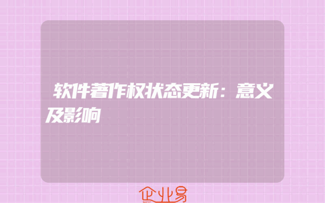 - 软件著作权状态更新解析:意义及影响一、软件著作权状态更新的意义随着信息技术的快速发展,软件作为知识创新的重要载体,其著作权状态更新的意义愈发凸显。软件著作权状态的更新反映了软件行业发展的动态和趋势,对于保护软件开发者权益、促进软件产业健康发