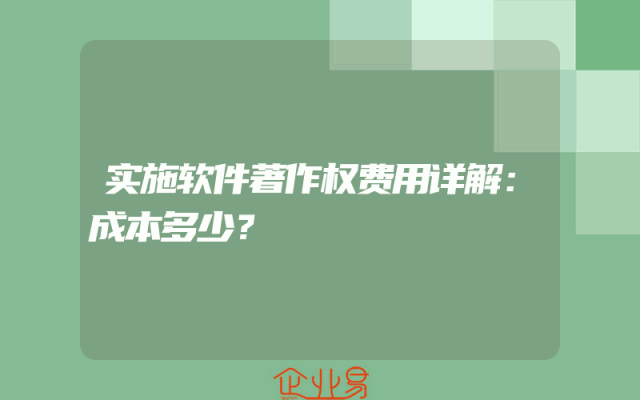 - 实施软件著作权费用详解:成本多少?
