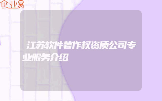 - 江苏软件著作权资质公司专业服务介绍