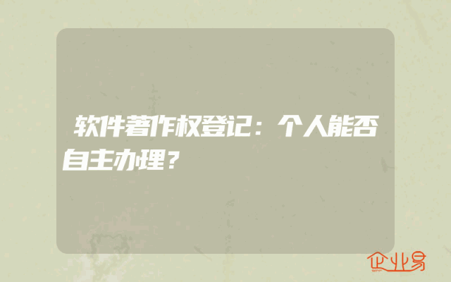 - 软件著作权登记:个人能否自主办理?