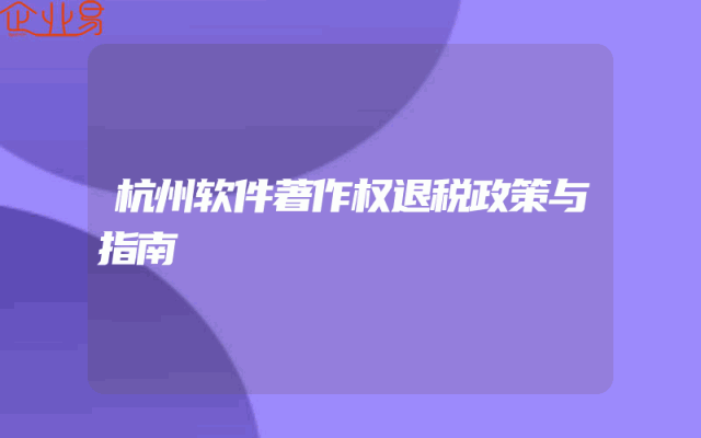 - 杭州软件著作权退税政策与指南