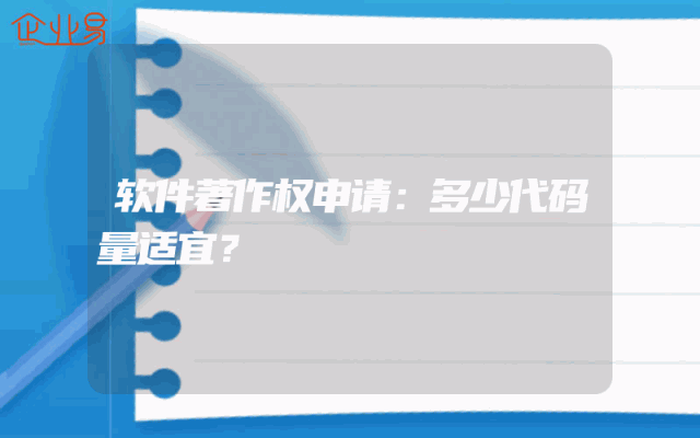 - 软件著作权申请:多少代码量适宜?一、软件著作权的基本概念软件著作权是指对软件的原创作品的著作权,包括计算机软件的源代码、目标代码、文档以及相关设计思想等。在申请软件著作权时,代码量是评估软件著作权的重要因素之一。二、代码量与软件著作权的申请