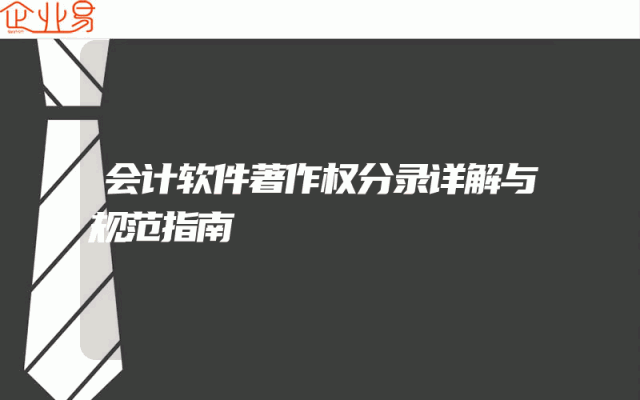 - 会计软件著作权分录详解与规范指南一、会计软件著作权概述随着信息技术的飞速发展,会计软件在企业管理中扮演着日益重要的角色。会计软件的著作权作为知识产权的一部分,对于保护软件开发者权益、促进软件行业发展具有重要意义。会计软件著作权分录是会计工作