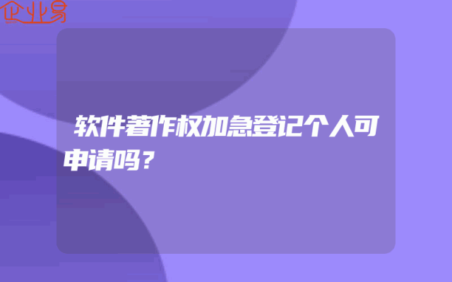 - 软件著作权加急登记个人可申请吗?