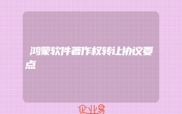 - 鸿蒙软件著作权转让协议要点解析一、协议概述随着科技的发展,软件著作权转让变得日益频繁。鸿蒙软件著作权转让协议是软件著作权转让过程中的重要法律文件。它明确规定了转让双方的权利和义务,旨在保护各方的合法权益。在签署协议前,对协议的要点进行深入解