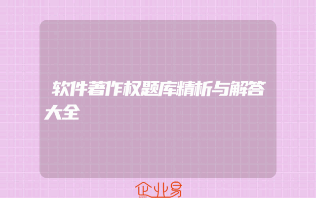 - 软件著作权题库精析与解答大全一、软件著作权概述在当今信息化社会,软件作为知识产权的重要组成部分,其著作权保护显得尤为重要。软件著作权题库精析与解答大全,旨在帮助大家全面了解和掌握软件著作权的相关知识。二、题库精析题库涵盖软件著作权的各个方面
