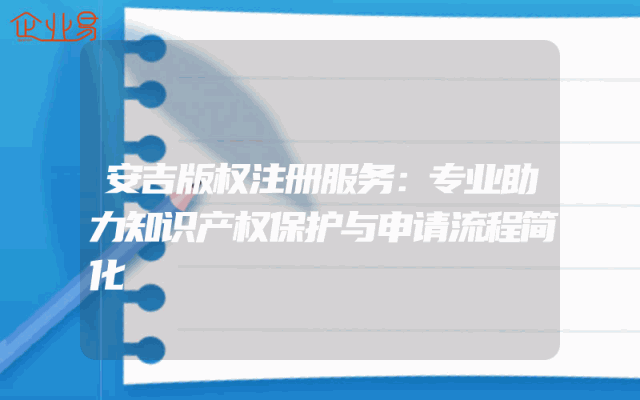 - 安吉版权注册服务:专业助力知识产权保护与申请流程简化