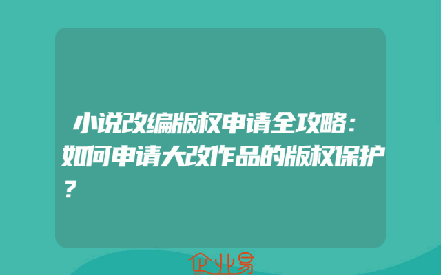 - 小说改编版权申请全攻略:如何申请大改作品的版权保护?