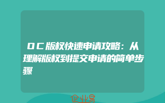 - OC版权快速申请攻略:从理解版权到提交申请的简单步骤