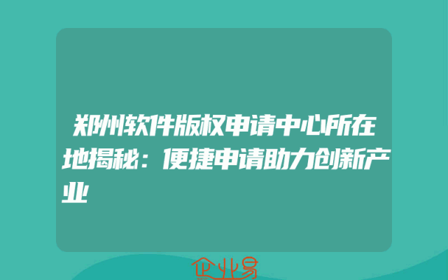 - 郑州软件版权申请中心所在地揭秘:便捷申请助力创新产业