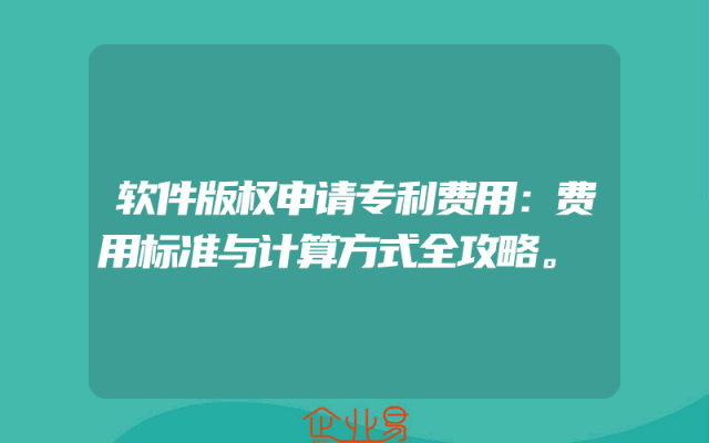 - 软件版权申请专利费用:费用标准与计算方式全攻略。