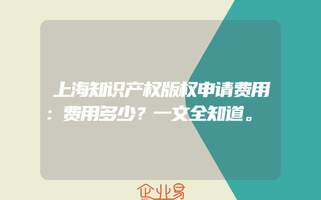 - 上海知识产权版权申请费用:费用多少?一文全知道。