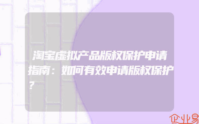 - 淘宝虚拟产品版权保护申请指南:如何有效申请版权保护?