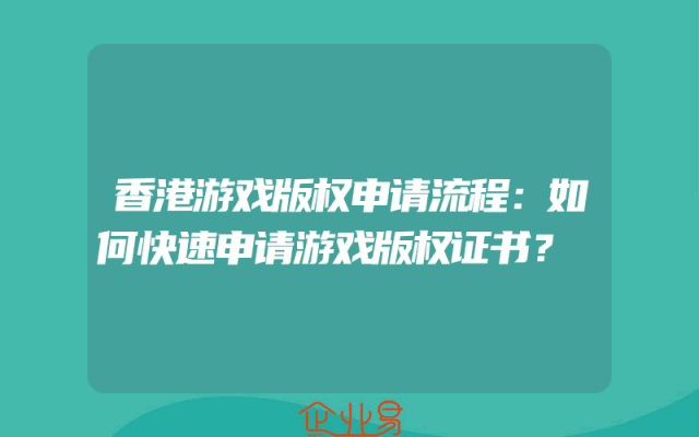 - 香港游戏版权申请流程:如何快速申请游戏版权证书?