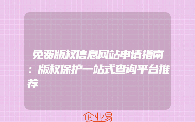 - 免费版权信息网站申请指南:版权保护一站式查询平台推荐