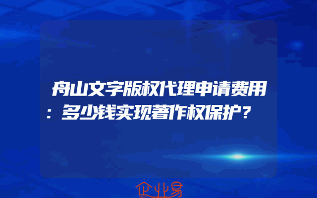 - 舟山文字版权代理申请费用:多少钱实现著作权保护?
