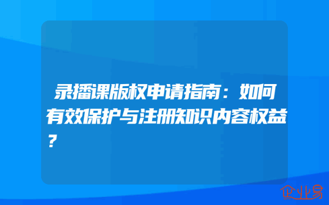 - 录播课版权申请指南:如何有效保护与注册知识内容权益?