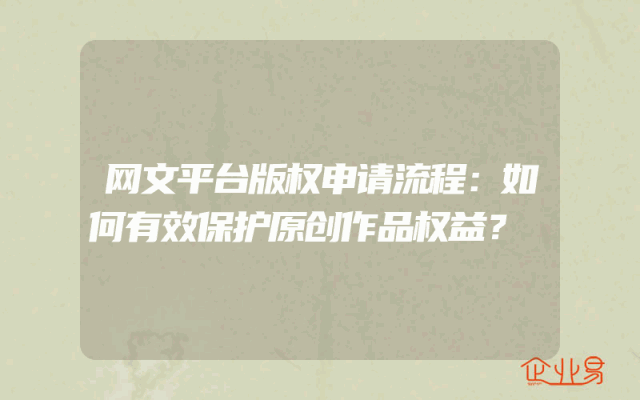 - 网文平台版权申请流程:如何有效保护原创作品权益?