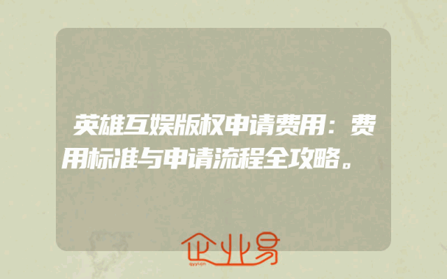 - 英雄互娱版权申请费用:费用标准与申请流程全攻略。