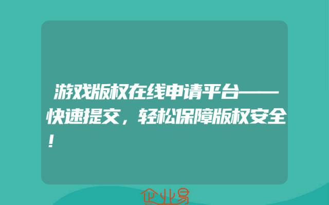 - 游戏版权在线申请平台——快速提交,轻松保障版权安全!