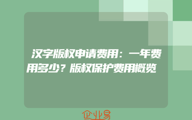 - 汉字版权申请费用:一年费用多少?版权保护费用概览