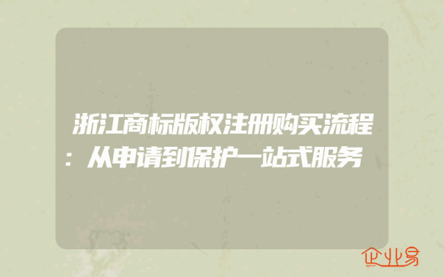 - 浙江商标版权注册购买流程:从申请到保护一站式服务