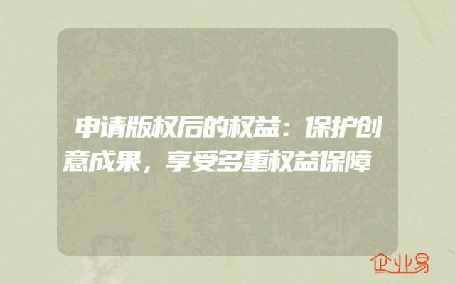 - 申请版权后的权益:保护创意成果,享受多重权益保障