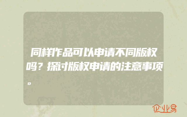 - 同样作品可以申请不同版权吗?探讨版权申请的注意事项。