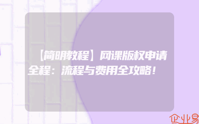 - 【简明教程】网课版权申请全程:流程与费用全攻略!