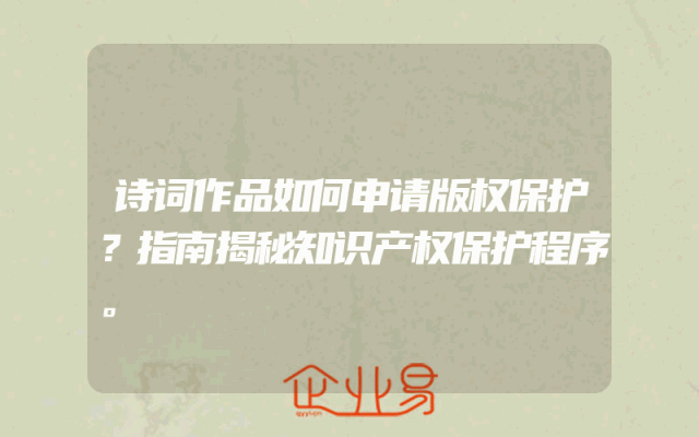 - 诗词作品如何申请版权保护?指南揭秘知识产权保护程序。