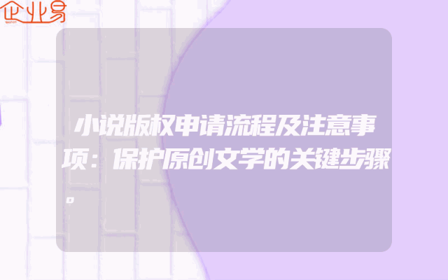 - 小说版权申请流程及注意事项:保护原创文学的关键步骤一、了解版权与知识产权的重要性在文学创作的领域里,保护原创作品的知识产权至关重要。版权作为知识产权的一部分,是创作者对其创作作品的独占权利。一部小说的作者应当了解其作品的原创性、独创性是其劳