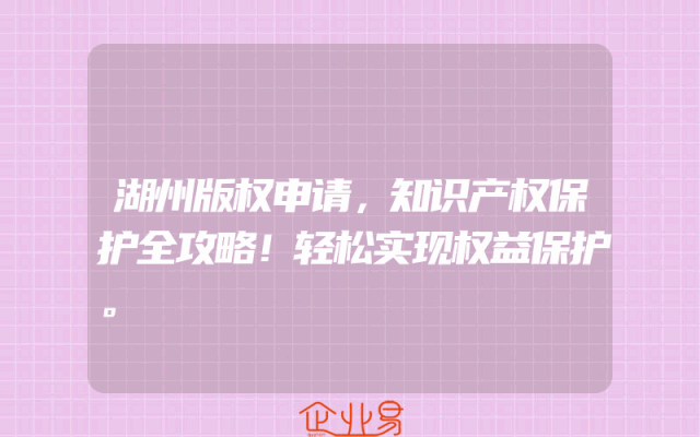 - 湖州版权申请,知识产权保护全攻略!轻松实现权益保护。