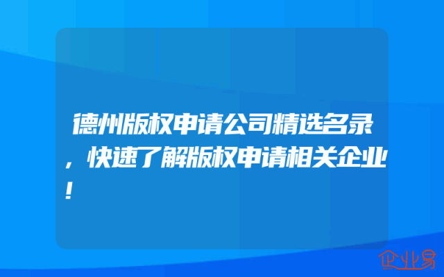 - 德州版权申请公司精选名录,快速了解版权申请相关企业!