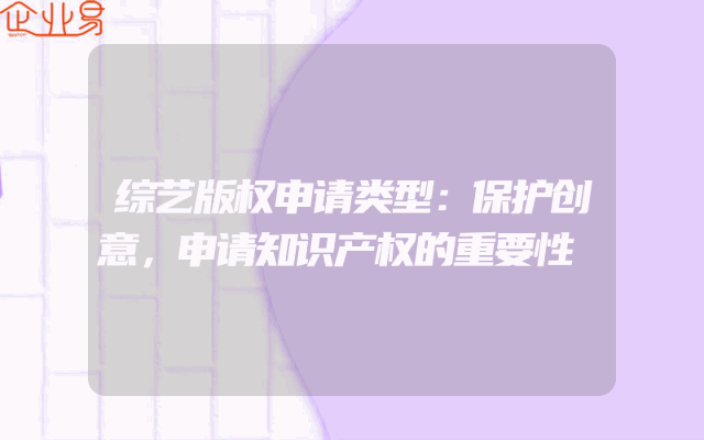 - 综艺版权申请类型:保护创意,申请知识产权的重要性