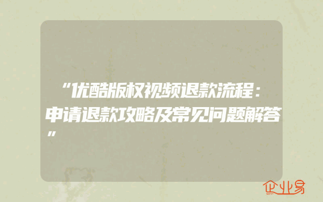 - “优酷版权视频退款流程:申请退款攻略及常见问题解答”
