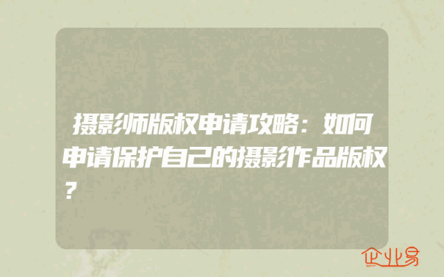 - 摄影师版权申请攻略:如何申请保护自己的摄影作品版权?