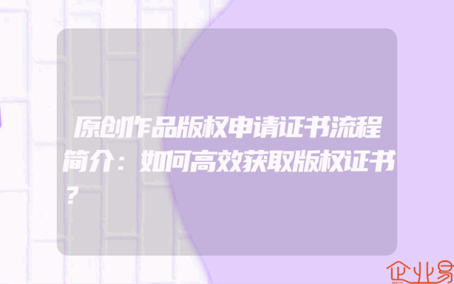 - 原创作品版权申请证书流程简介:如何高效获取版权证书?