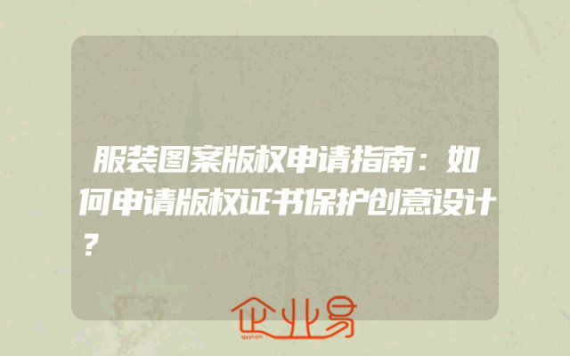 - 服装图案版权申请指南:如何申请版权证书保护创意设计?