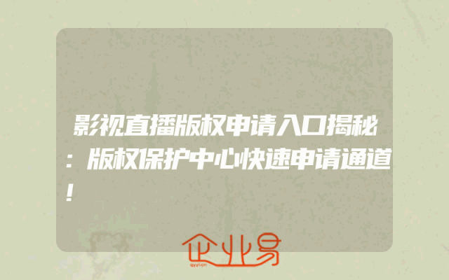 - 影视直播版权申请入口揭秘:版权保护中心快速申请通道!