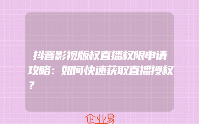 - 抖音影视版权直播权限申请攻略:如何快速获取直播授权?