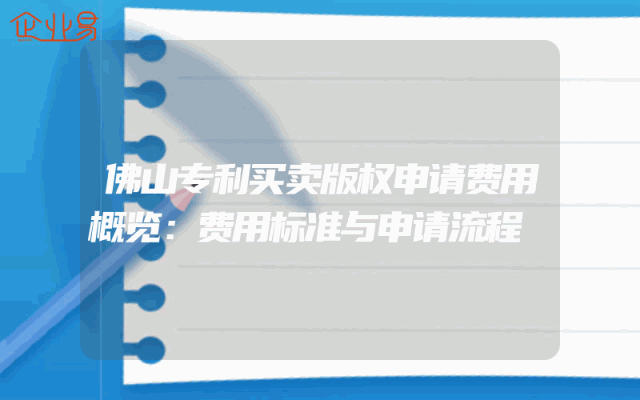 - 佛山专利买卖版权申请费用概览:费用标准与申请流程