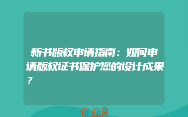 - 新书版权申请指南:如何申请版权证书保护您的设计成果?