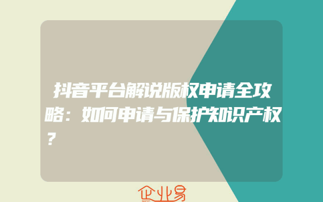 - 抖音平台解说版权申请全攻略:如何申请与保护知识产权?