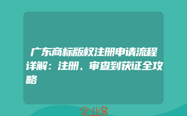 - 广东商标版权注册申请流程详解:注册、审查到获证全攻略