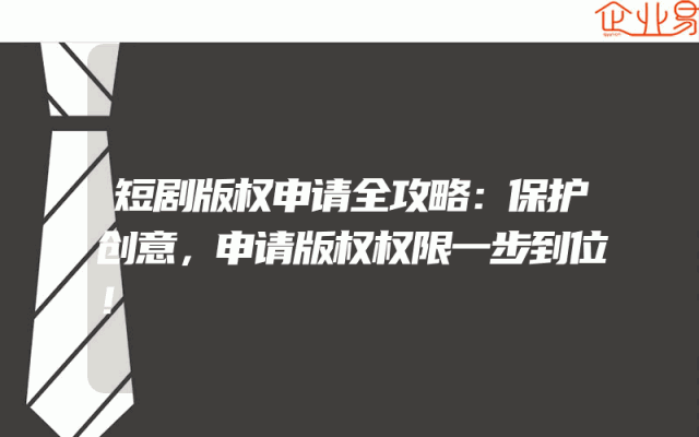- 短剧版权申请全攻略:保护创意,申请版权权限一步到位!